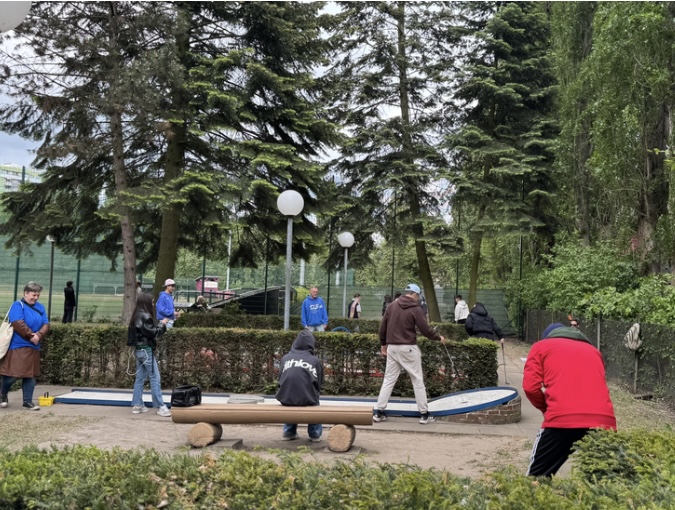 Der Nachmittag begann bei bewölktem Himmel auf dem Gelände des Reinickendorfer Minigolf SC. Die Schülergruppe aus Zypern kam voller Vorfreude, und unsere SIB Teilnehmer*innen und Helfer*innen begrüßten sie herzlich. Bevor wir mit dem eigentlichen Spiel starteten, stellten wir kurz den SIB e.V. vor - den Verein für Inklusion und interkulturellen Austausch. Wir erklärten, wer wir sind, was unsere Ziele sind und warum wir es so wichtig finden, Menschen unterschiedlicher Herkunft und Lebenssituationen zusammenzubringen. Dabei legten wir den Fokus auch auf Inklusion, denn es ist uns wichtig, allen Menschen - unabhängig von Herkundt oder Fähigkeiten - die Teilnahme zu ermöglichen. Es ist immer wieder schön zu sehen, wie interessiert die jungen Leute sind, wenn sie mehr über unsere Arbeit erfahren. Das fördert das gegenseitige Verständnis und schafft eine Grundlage für ein gutes Miteinander.